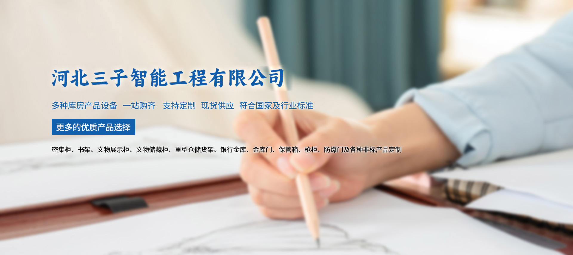 河北三子智能工程有限公司主營密集柜、書架、文物展示柜、文物儲藏柜、重型倉儲貨架、銀行金庫、金庫門、保管箱、槍柜、防爆門及各種非標產(chǎn)品定制。我們集研發(fā),設計,生產(chǎn),銷售和服務于一體,擁有國內(nèi)先進的設備和專業(yè)的制作團隊,我們秉承踏實,創(chuàng)新,責任的企業(yè)精神服務于檔案存儲,倉儲物流,農(nóng)業(yè)部,博物館,美術館,銀行,部隊,學校等多個領域,我們始終堅持用戶至上和精益求精為客戶提供優(yōu)質(zhì)的產(chǎn)品及服務。